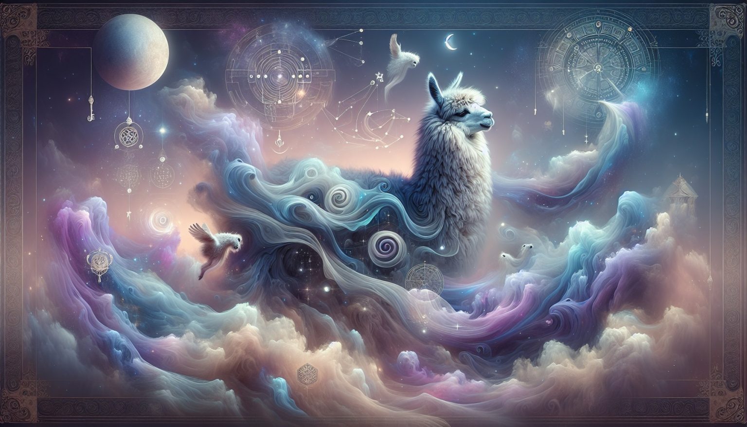 Dans ce rêve, l’alpaga chante une mélodie secrète, révélant une harmonie profonde entre l’âme et l’univers.