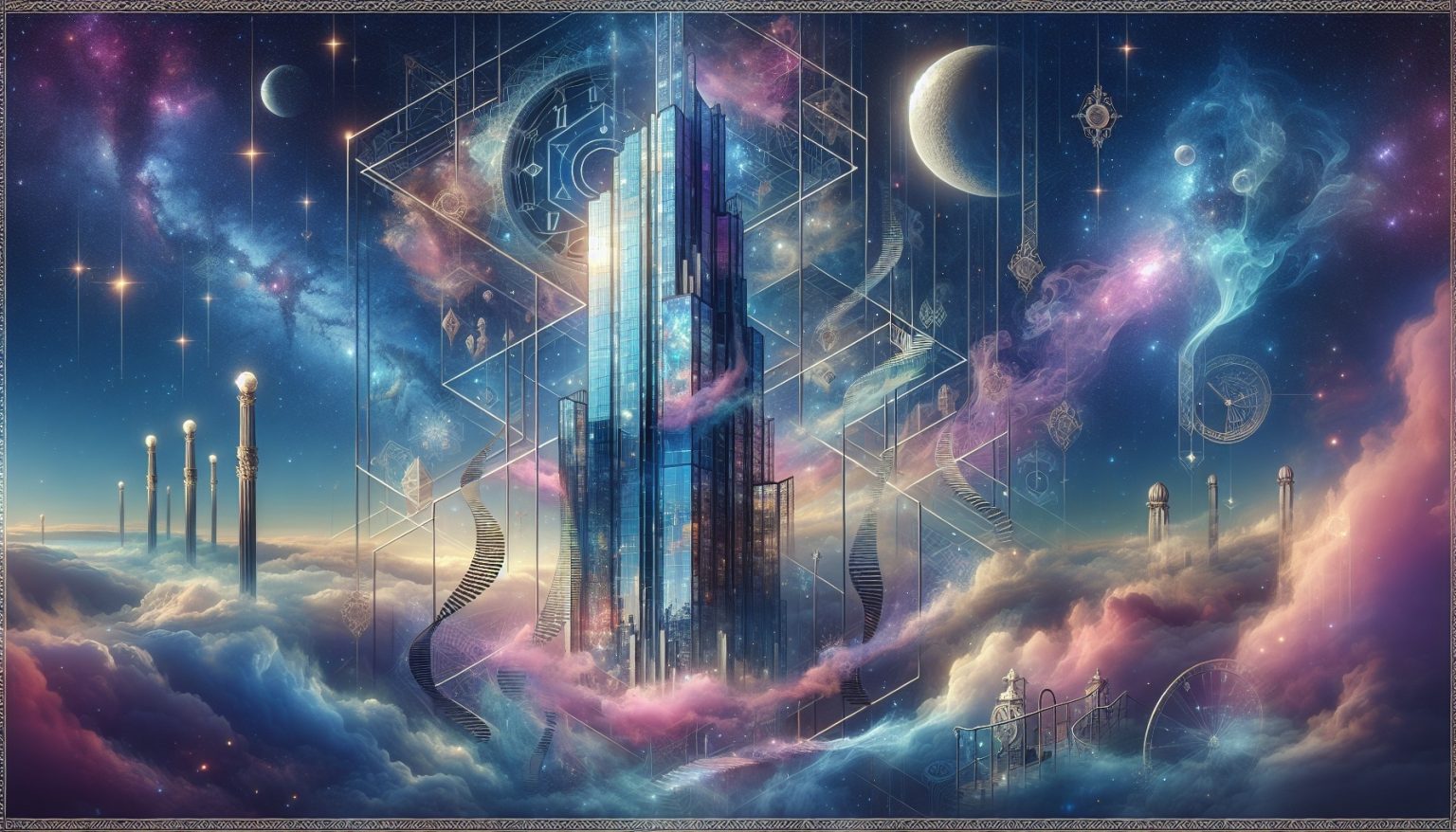 - Le gratte-ciel se fond dans le ciel : Indique une transcendance des limites personnelles et une connexion spirituelle accrue.