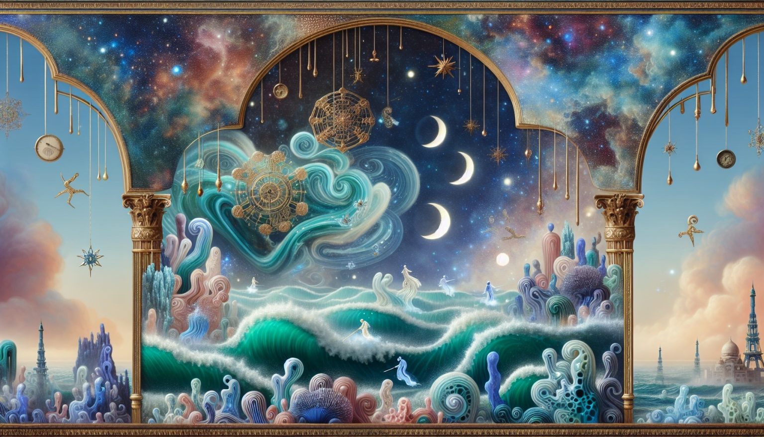 Le flux et reflux symbolisent les cycles émotionnels et renaissances.